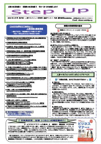 人事マネジメント研究所 進創アシスト 発行の「 news letter 2010年8月号 (pdf)」です。ダウンロードしてご覧ください。進創アシスト 鷹取...