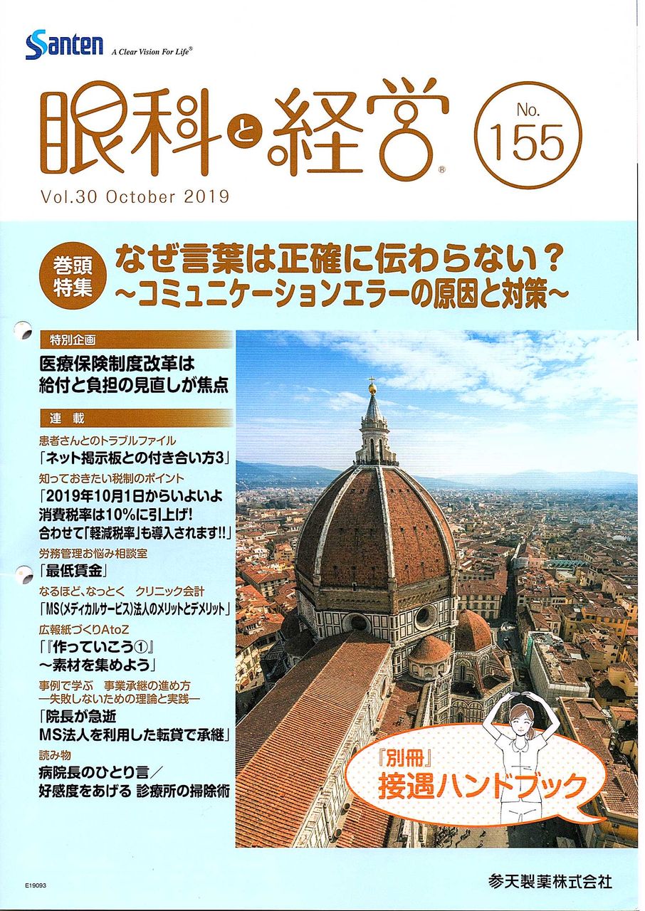 参天製薬さまの『眼科と経営 155号』 「労務管理お悩み相談室」の記事を執筆担当させていただきました。