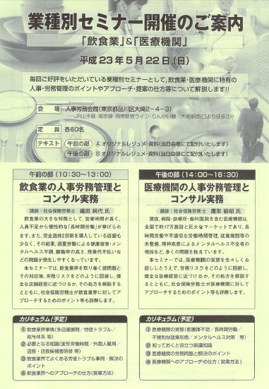 す。興味がございましたらご参加ください。きっかけは、雑誌『SR21号』特集「 狙い目業種の最新事情とアプローチ法&労務コンサル実務 ~ 医療・福祉関連業 編 ~」への執筆です。